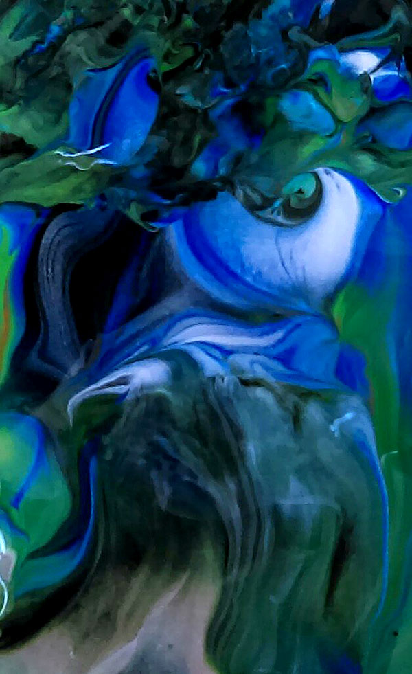 As Neverworld inhabitants began to shyly show themselves at the very beginning of the process of discovery several years ago, Trisha Bone aptly named them Neverlings. They live in everyone's imagination, but not everyone can see them every time. The only way anyone can see where the Neverlings live is to search diligently with an open mind amongst the chaos of an abstract painting. And a magnifying glass doesn't hurt to use in the search. Neverworld is a tiny world with a huge story to tell. Trisha can show anyone how to help the Neverlings tell their stories all about what it's like to live in a land of imagination.