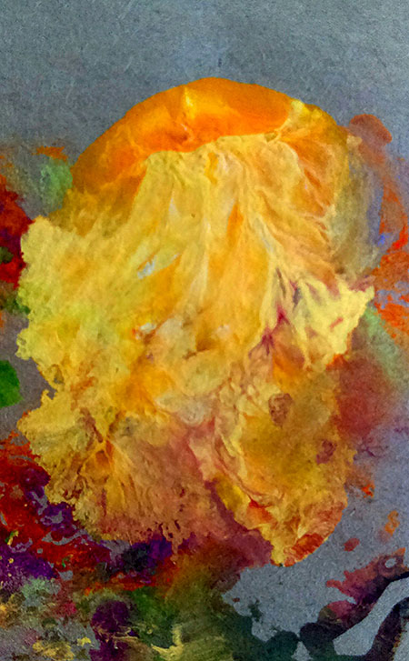 5 - The final step in the painting process is to either stop after dabbing if you love the result thus far. However, if you want to go into NeverWorld a little deeper, just press the cardboard onto paper or canvas once or twice forcing excess paint to disperse. Watch the amazing blends that happen then!