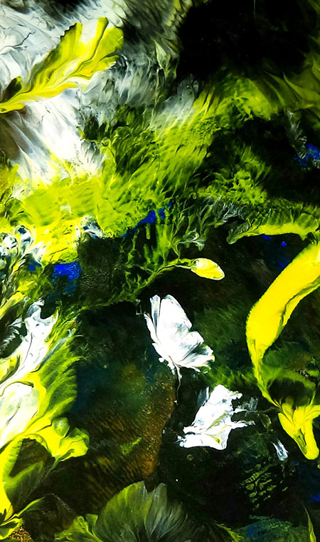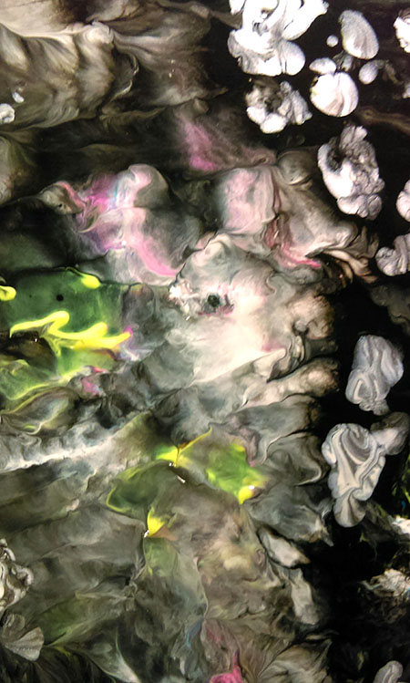 NeverWorld is an accidental abstract technique that ignites the imaginations of every generation. This art is definitely a conversation starter, and the brilliant colors will brighten any room at home or in the office.